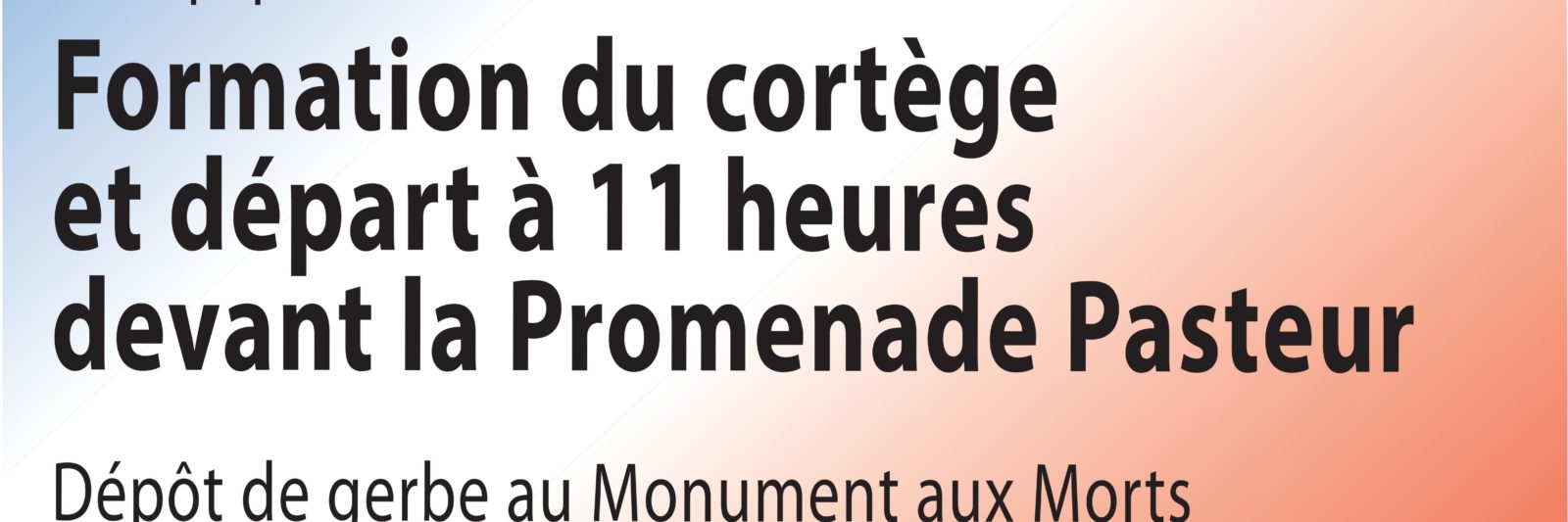 - 11 h: Formation du cortège devant la Promenade Pasteur pour se rendre au Monument aux Morts.