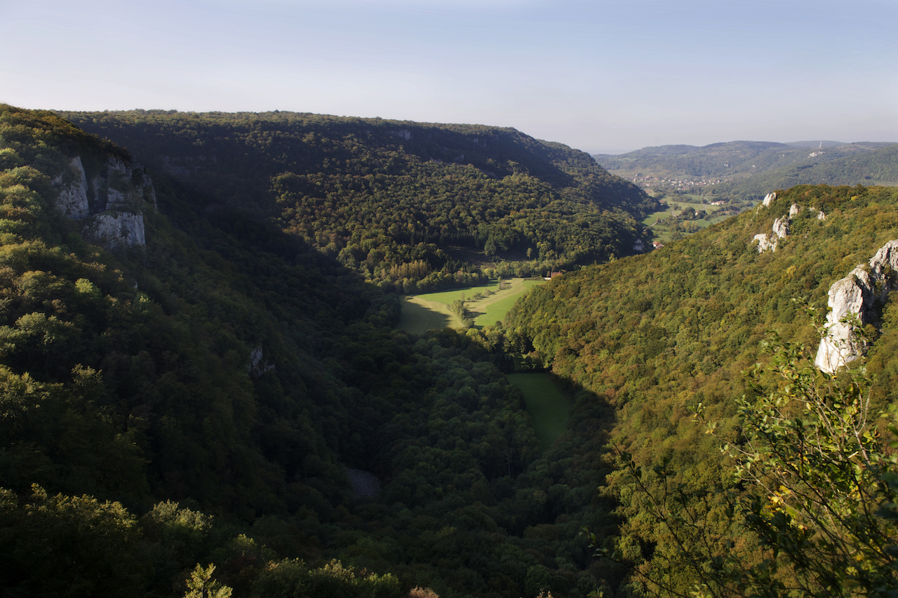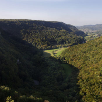 Située à deux pas d’Arbois, au cœur du Revermont, la reculée des Planches est classée au titre des sites naturels protégés et se trouve en zone Natura 2000. Elle est un véritable témoignage de la beauté des paysages du Jura. Façonnée par l’érosion du calcaire, la reculée des Planches présente un relief caractéristique du plateau karstique jurassien. Les falaises sont riches en faune ornithologique et constituent un endroit de nidification et de reproduction de rapaces. Il n’est donc pas rare d’y observer le vol de faucons pèlerin ou de choucas des tours.En suivant la vallée, de nombreuses cascades s’offrent en spectacle, dont la fameuse cascade des Tufs, alimentées par les eaux de la Cuisance, fraichement sortie de la grotte des Planches.